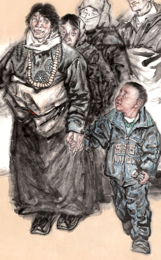 概言之,从杨宏伟的画面看,他的情感指向,关注的更多的是“草根”一族。所以,他应该能比一般的经院式画家更清楚任何一个社会在设计制度,都应该建立在人类美德的预设上。所以,乍一看他是作品。也许有人会认为他的如是作品只是完成了一半,但实际上,当我们看到他的作品泛起隐恻之心之时,他的作品的人文任务,其实就已经是完整的了。我们要在这个意义上理解杨宏伟“元真实”意义上的“原态”水墨人物。