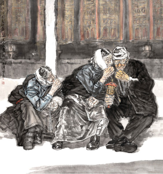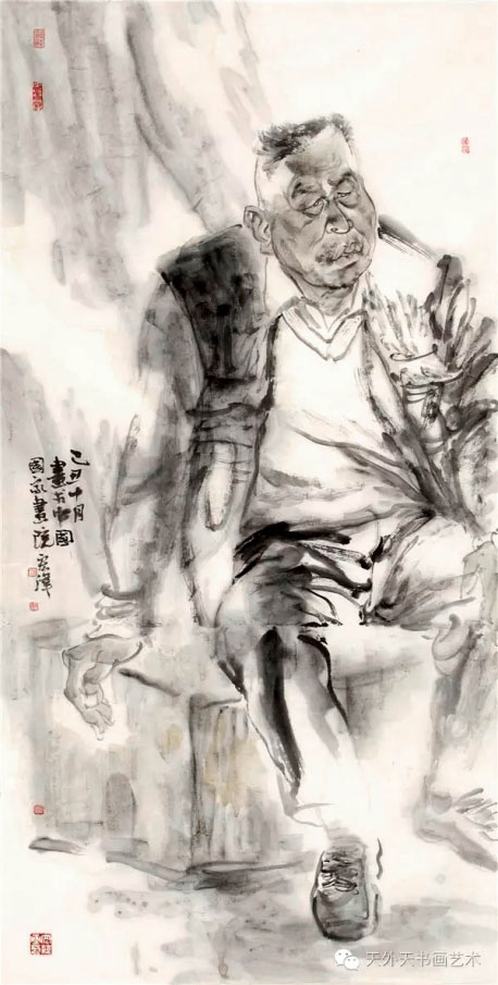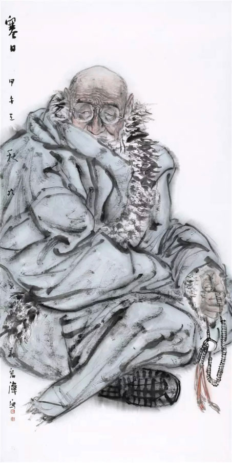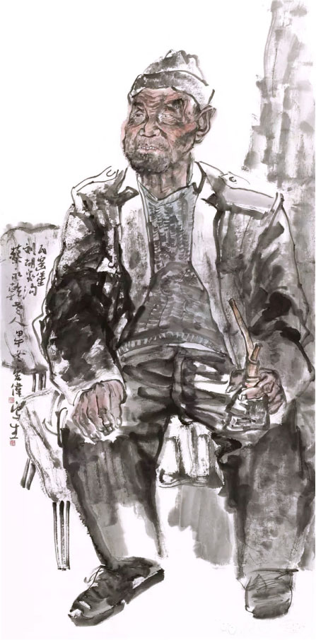 杨宏伟的水墨人物,技法上有令人玩味无穷的抽象意味支撑其中,表面看这是在“学院写实”中兑入传统的“逸笔手法”,但实质上,那便是一种通过“心观”而获得的情感符号暗喻——在国家画院学习期间,杨宏伟即深知,作为当代画家,必须首先清洗经验假象,用图象语言来表现社会人生的本质真实。在某种意义上讲,这实际上仍需要作者在画面变现超越对外物的镜映式约束,而去追求通过“心观”的方式而产生的本质真实。