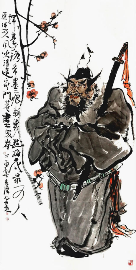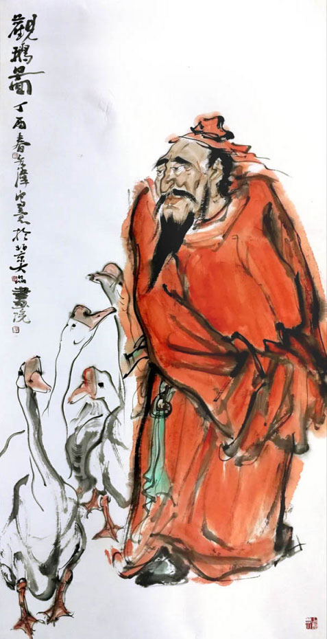 至此,我们还想说,杨宏伟山水画、花鸟画以及古装人物小品,画得也很好:靠谱,有模有样,有新气象。时代在往前走,艺术必定会带上它能够带上的东西前行,而各种艺术形式都是触类旁通的,有些规律性的东西是通用的,在杨宏伟的山水画、花鸟画以及古装人物小品作品中,显然已经有了一些从他的人物画成就移植来的适合这个时代的新语言、新手法。所以,站在这个高度,当杨宏伟去画他的山水花鸟以及古装人物小品,你会感到他一方面有着极为灵敏善变的专业素养,另一方面,也会感到他有着极为清醒的与时俱进的变法出新的自觉意识。